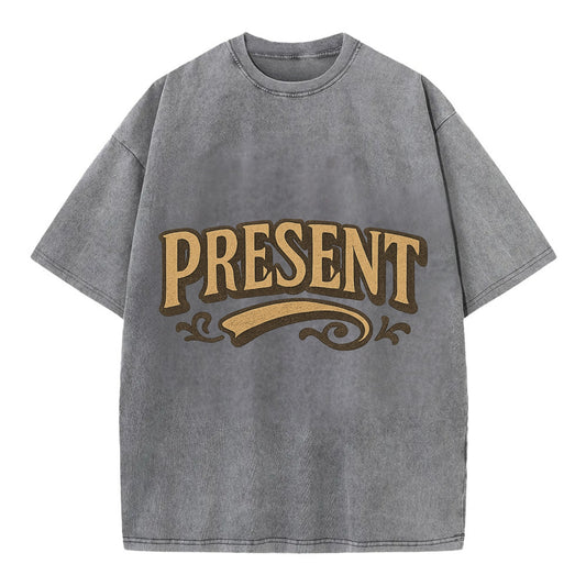 Bold typography design - PRESENT - living in the now - Vintage T-shirt