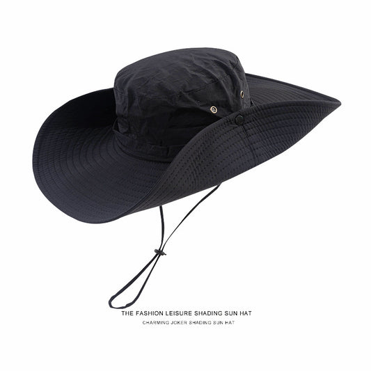 Western Cowboy Hat - Drawstring Fishing Hat with Wide Brim for Summer Sun Protection, Outdoor Fishing, and Hiking