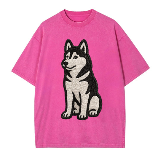 シベリアンハスキー ブラック ホワイト ロイヤルスピリット ヴィンテージ Tシャツ