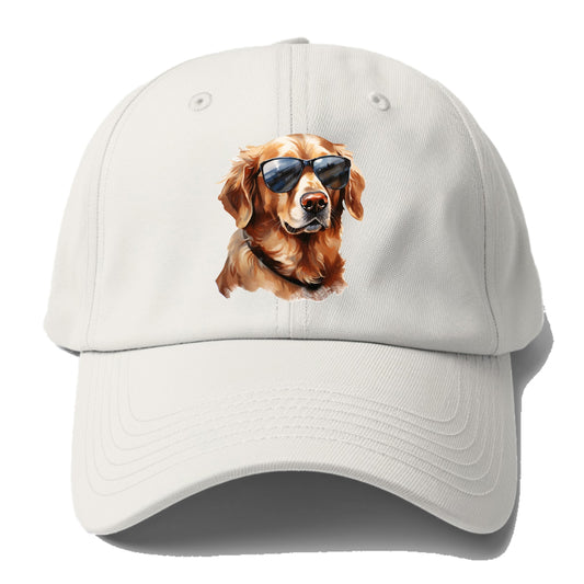サングラスをかけた野球帽のゴールデンレトリバー