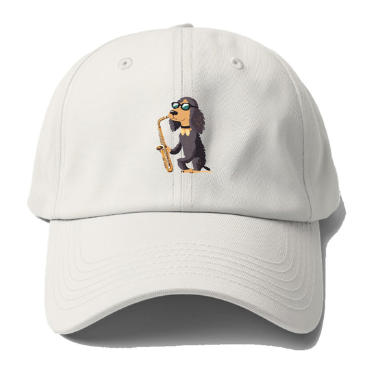 セールサックスを演奏する犬の野球帽