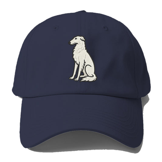 Borzoi - White embroidered sitting pose - Baseball Cap