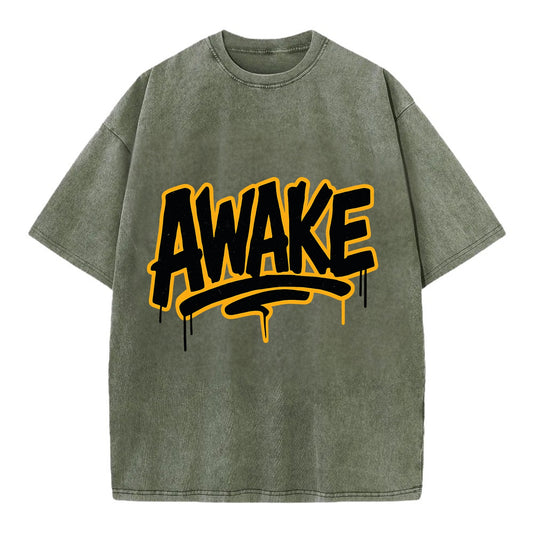 Bold typography design - AWAKE - conscious, aware, alert - Vintage T-shirt
