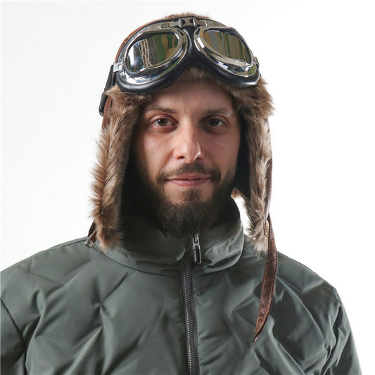 PANDAIZE Faux Leather Winter Hat - Outdoor Windproof and Cold-Resistant, Ideal for Cycling, Ear Protection, Aviator Style