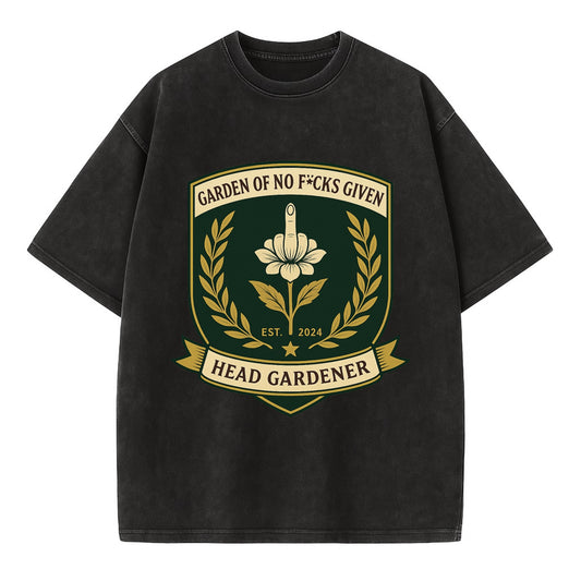 Shield with middle finger flower - Garden of No F*cks Given - Head Gardener - - Vintage T-shirt