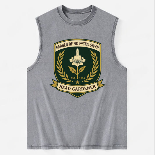 Shield with middle finger flower - Garden of No F*cks Given - Head Gardener - Vintage Washed Tank