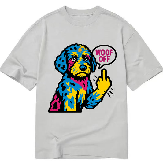 Aussiedoodle with merle patches and curly coat, playful smart paw raised - Classic T-shirt