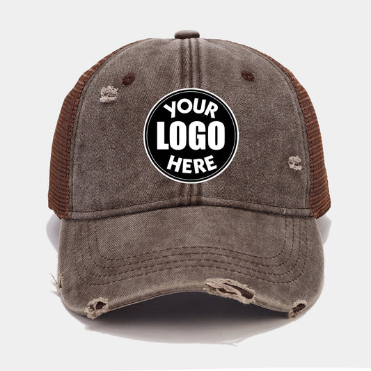 Pandaize Custom Cap – Unisex Distressed Washed Baseball Cap Summer Breathable Sun Protection Hat with Hollow Mesh Design