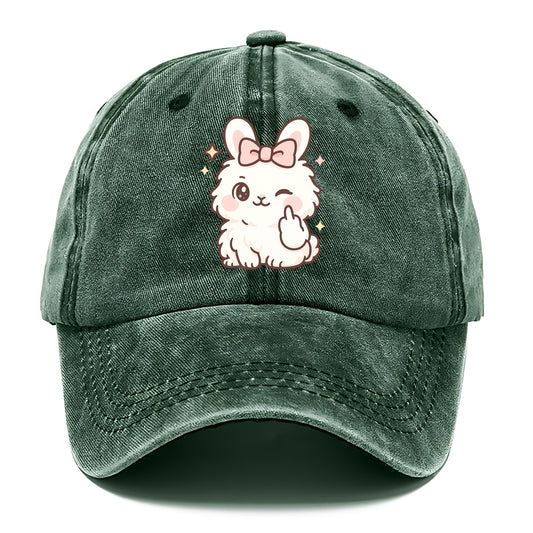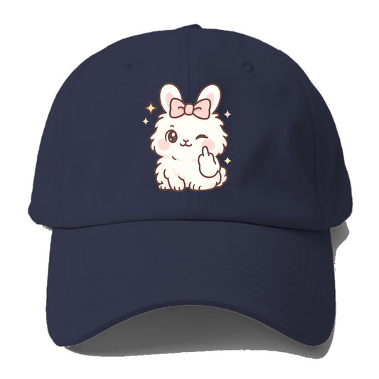 fluffy white angora rabbit with pink bow, one paw delicately flipping off - Baseball Cap