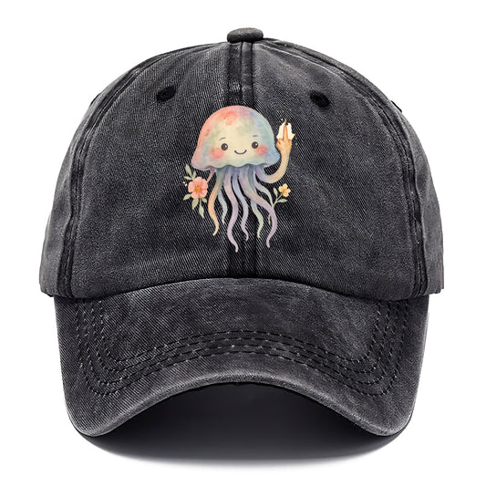 jellyfish with kawaii face and tentacles, one tentacle pointing up defiantly - Baseball Cap