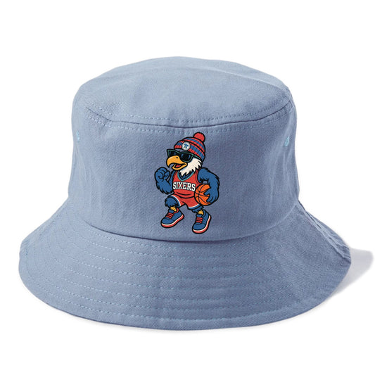 Philadelphia Eagle wearing 76ers red white and blue beanie with bell patch and - Bucket Hat