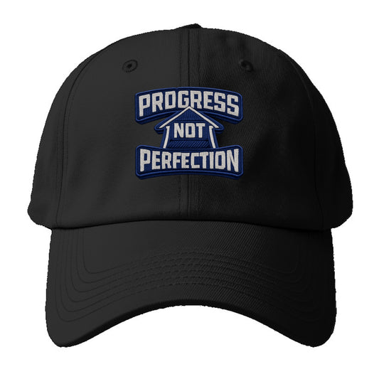PROGRESS NOT PERFECTION - arrow with text in blue , growth mindset - Baseball Cap