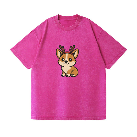 Corgi Wearing Reindeer Antlers Christmas Theme Portrait Design Vintage T-shirt