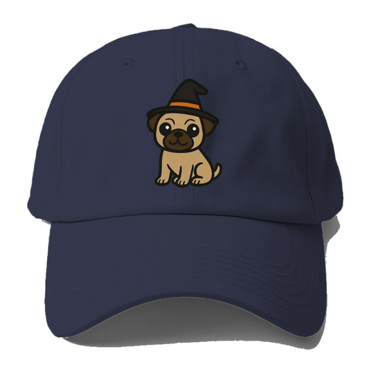 Pug Wearing Witch Hat Halloween Theme Portrait Design Baseball Cap