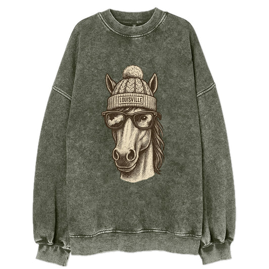 Kentucky Thoroughbred Horse wearing Louisville beanie with pom pom and - Vintage Sweatshirt