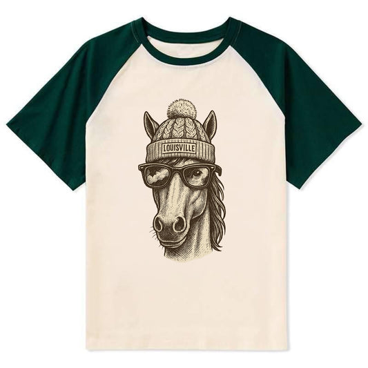 Kentucky Thoroughbred Horse wearing Louisville beanie with pom pom and - Contrast Raglan T-shirt