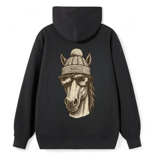Kentucky Thoroughbred Horse wearing Louisville beanie with pom pom and - Classic Pullover Hoodie