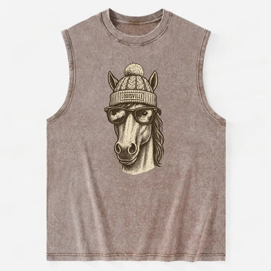 Kentucky Thoroughbred Horse wearing Louisville beanie with pom pom and - Vintage Washed Tank