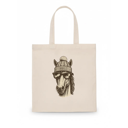 Kentucky Thoroughbred Horse wearing Louisville beanie with pom pom and wayfarer - Tote Bag