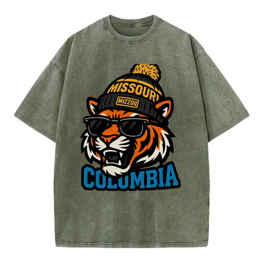 Columbia Tiger wearing Missouri beanie with Mizzou patch - Vintage Washed Tank