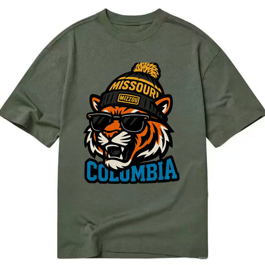Columbia Tiger wearing Missouri beanie with Mizzou patch - Vintage T-shirt