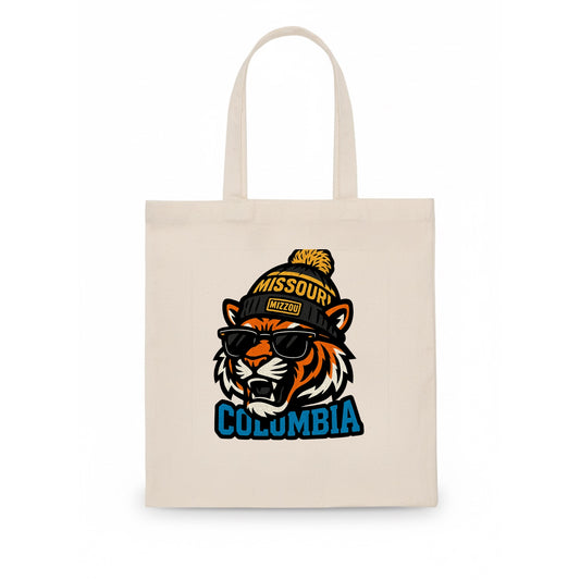 Columbia Tiger wearing Missouri beanie with Mizzou patch - Tote Bag