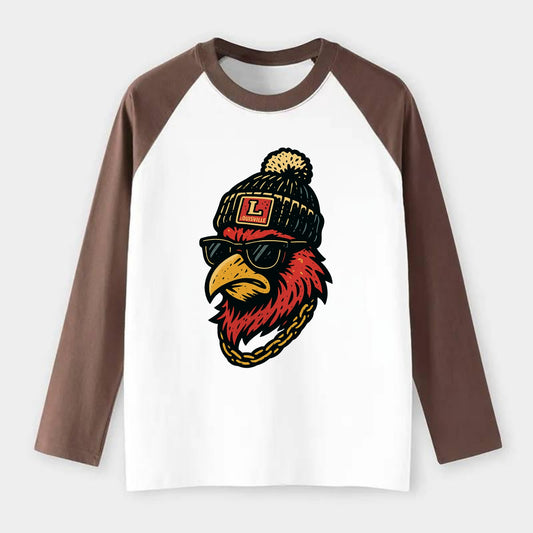 Louisville Cardinal wearing Louisville beanie with L patch - Raglan Long Sleeve T-Shirt