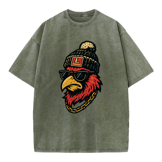 Louisville Cardinal wearing Louisville beanie with L patch - Vintage T-shirt