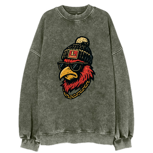 Louisville Cardinal wearing Louisville beanie with L patch - Vintage Sweatshirt