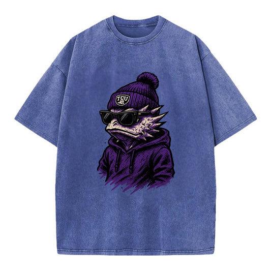 Fort Worth Horned Frog wearing TCU beanie with frog patch - Vintage T-shirt