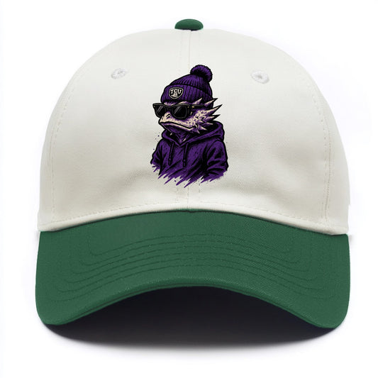 Fort Worth Horned Frog wearing TCU beanie with frog patch - Two Tone Cap