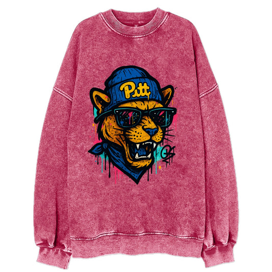 Pittsburgh Panther wearing Pitt beanie with script patch - Vintage Sweatshirt