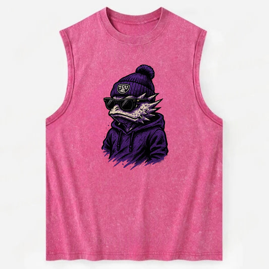 Fort Worth Horned Frog wearing TCU beanie with frog patch - Vintage Washed Tank