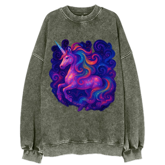 Magical unicorn with flowing rainbow gradient mane, iridescent horn with - Vintage Sweatshirt