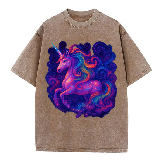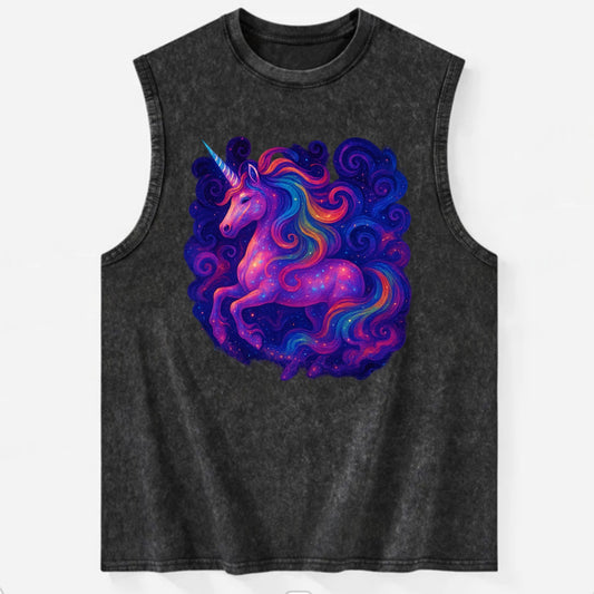 Magical unicorn with flowing rainbow gradient mane, iridescent horn with - Vintage Washed Tank