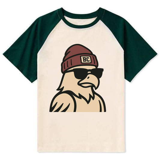 Chestnut Hill Eagle wearing Boston College beanie with BC patch - Contrast Raglan T-shirt
