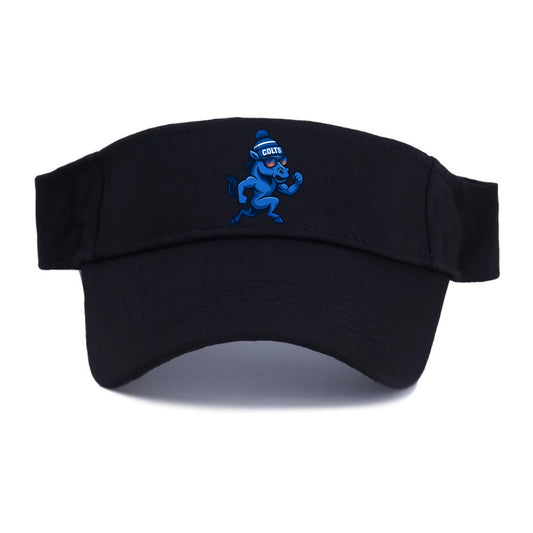 Indianapolis Colt Horse wearing Colts blue and white beanie with pom pom and wayfarer - Visor