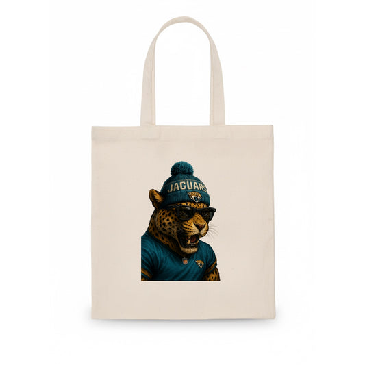 Jacksonville Jaguar wearing Jaguars teal and gold beanie with pom pom and wayfarer - Tote Bag