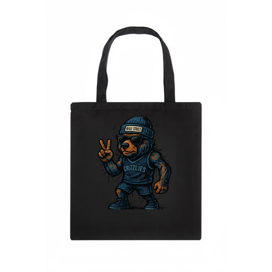 Memphis Grizzly Bear wearing Grizzlies navy and light blue beanie with Beale Street - Tote Bag