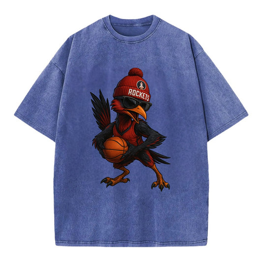 Houston Roadrunner wearing Rockets beanie with launch pad patch and wayfarer - Vintage T-shirt