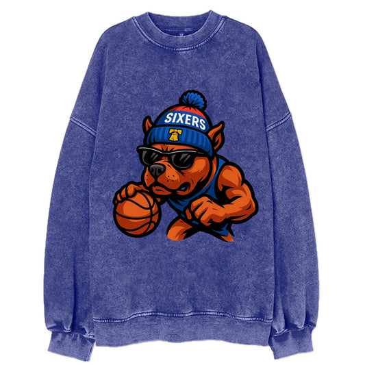 Philly Pitbull wearing Sixers beanie with Liberty Bell and wayfarer sunglasses - Vintage Sweatshirt