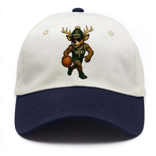 Milwaukee Buck Deer wearing Bucks green and cream beanie with antlers and wayfarer - Two Tone Cap
