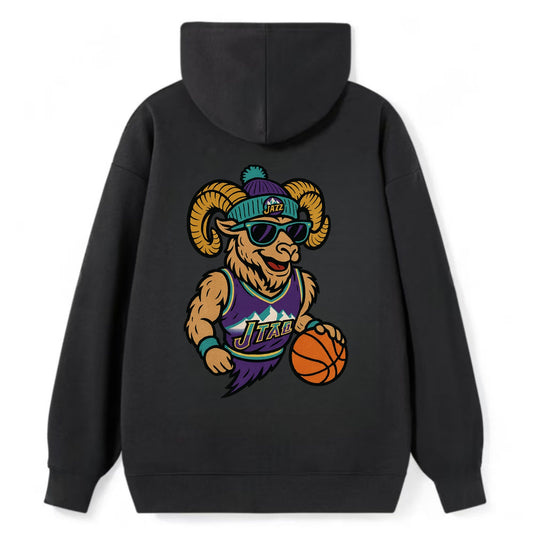 Utah Bighorn wearing Jazz beanie with mountain melody patch and wayfarer - Classic Pullover Hoodie