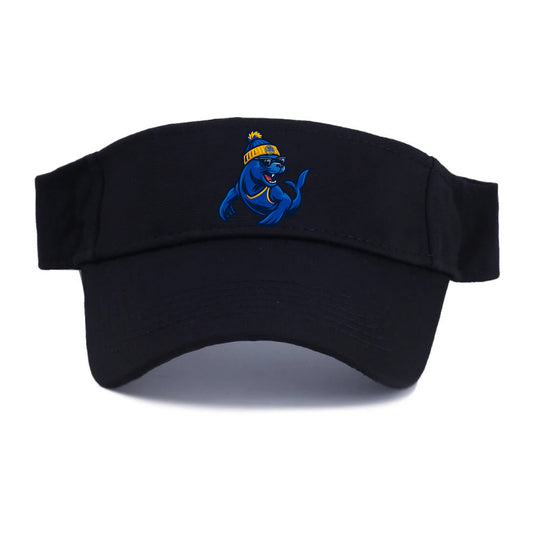 Bay Area Sea Lion wearing Warriors blue and gold beanie with Golden Gate and wayfarer - Visor