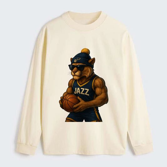 Utah Mountain Lion wearing Jazz navy and yellow beanie with music note - Classic Long Sleeve Shirt