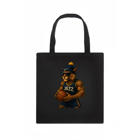 Utah Mountain Lion wearing Jazz navy and yellow beanie with music note and wayfarer - Tote Bag