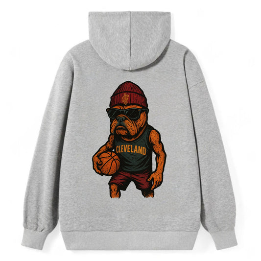 Cleveland Bulldog wearing Cavaliers wine and gold beanie with sword patch - Classic Pullover Hoodie