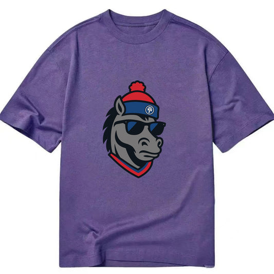 Detroit Stallion wearing Pistons red and blue beanie with piston patch and - Classic T-shirt