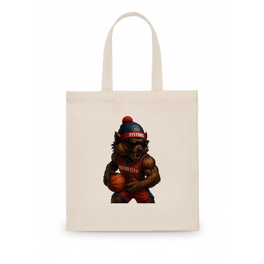 Motor City Wolverine wearing Pistons beanie with gear patch and wayfarer sunglasses - Tote Bag