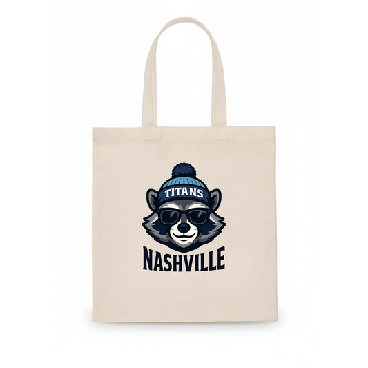 Nashville Raccoon wearing Titans navy and light blue beanie with pom pom and wayfarer - Tote Bag